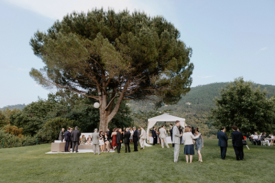 Tout l’espace extérieur a été particulièrement préparé avec attention pour être un magnifique lieu de réception. Le mobilier choisi, les décorations dans le jardin. Mais j’ai vraiment eu un coup de cœur pour le pin parasol absolument splendide! (et de nuit avec les lumières c’est encore plus beau!).
