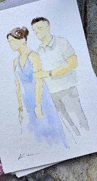 La plupart du temps, mes prestations sont réservées plusieurs mois à l’avance (on m’a déjà réservé une prestation de portraits d’invités pour un mariage un an et demi à l’avance!)Mais cette fois-ci, c’est du dernière minute! Les mariés avaient réservé les services d’un autre artiste de Fréjus, mais deux semaines avant le mariage, il annule… Le marié m’appelle catastrophé; une chance, j’étais encore disponible à cette date!